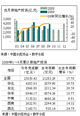 ——1~9月,房地產(chǎn)投資同比增長(zhǎng)17.70%,當(dāng)月投資同比增長(zhǎng)37.06%,是2009年當(dāng)月同比增速最高的月份;