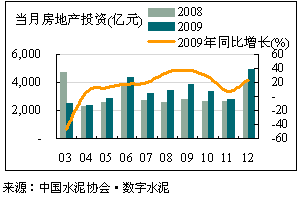 2009年我國完成房地產(chǎn)開發(fā)投資36,231.71億元,比上年增長16.1%,增速比1~11 月回落1.7 個百分點(diǎn)。12 月當(dāng)月房地產(chǎn)投資完成4,960.79億元,同比增長22.97%。