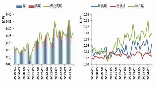 圖12:煤及褐煤進口量 圖13: 分煤種進口量