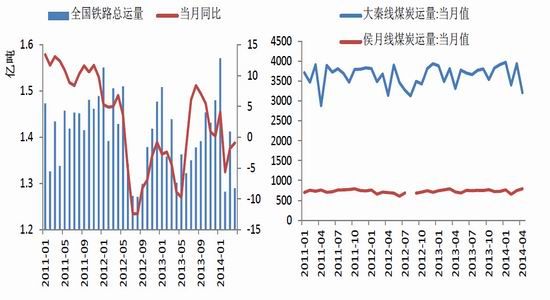 4月大秦線煤炭運量3 212萬噸,1-4月大秦線煤炭運量累計14 529.5萬噸,累計同比上漲0.2%,占全國煤炭鐵路運輸總量的26.2%。侯月線4月份煤炭運量789萬噸,1-4月份侯月線煤炭累計發(fā)運2 874.1萬噸,累計同比下降4.7%。
