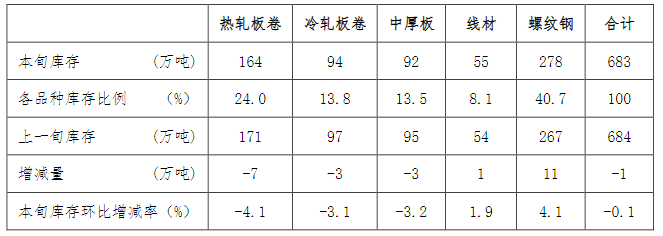 11月下旬,21個(gè)城市5大品種鋼材社會(huì)庫(kù)存683萬(wàn)噸,環(huán)比減少1萬(wàn)噸,下降0.1%,庫(kù)存變化不大;比10月下旬減少17萬(wàn)噸,下降2.4%;比年初減少46萬(wàn)噸,下降6.3%;比上年同期減少72萬(wàn)噸,下降9.5%。