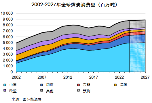 報告預計,到2027年前,全球煤炭需求預計將維持區(qū)間內(nèi)窄幅波動。盡管印度和東盟國家需求增長抵消了歐盟和美國的下降,但中國仍是全球煤炭需求的主要決定因素。