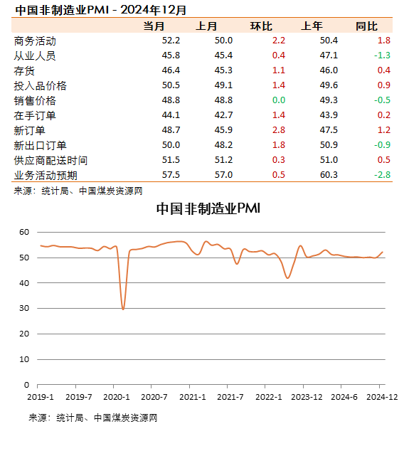 12月份,制造業(yè)采購經(jīng)理指數(shù)為50.1%,比上月下降0.2個百分點;非制造業(yè)商務(wù)活動指數(shù)和綜合PMI產(chǎn)出指數(shù)均為52.2%,分別比上月上升2.2和1.4個百分點,三大指數(shù)均位于擴張區(qū)間,企業(yè)生產(chǎn)經(jīng)營活動加快,我國經(jīng)濟(jì)景氣水平延續(xù)回升向好態(tài)勢。